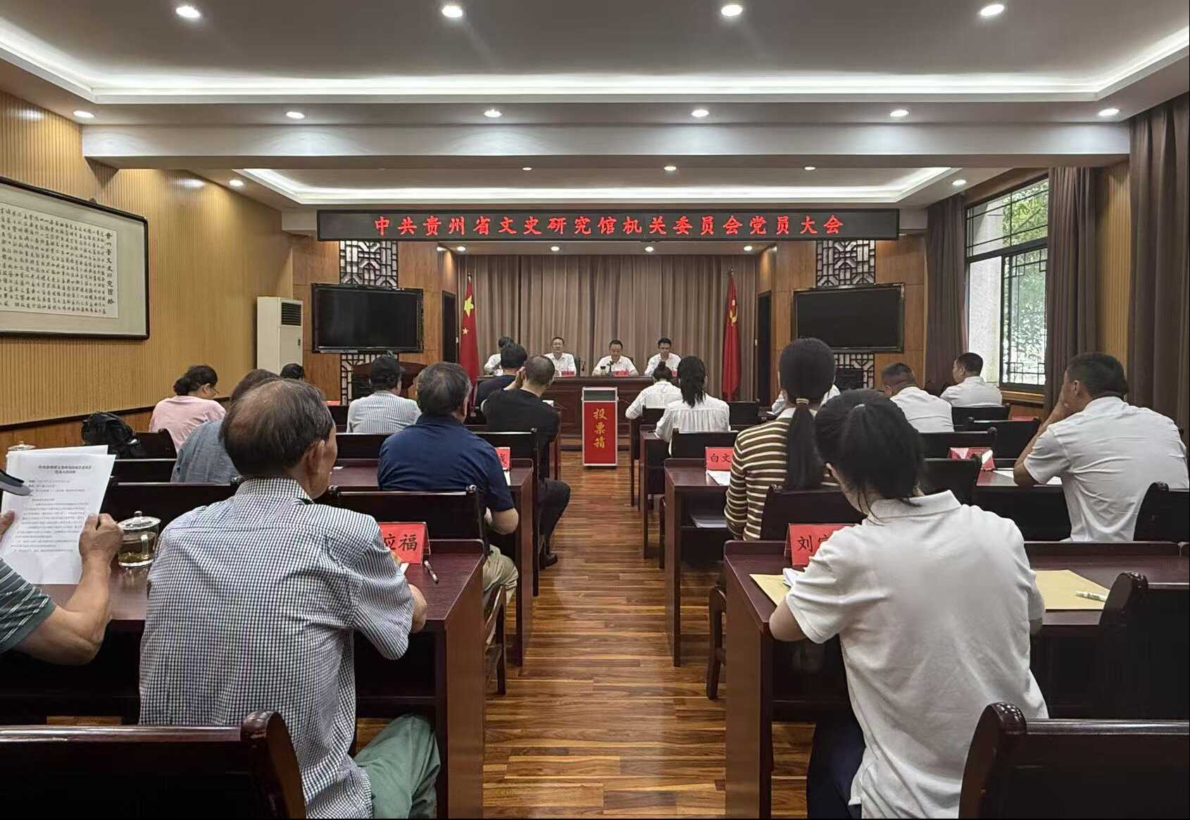 大会在庄严的国歌声中拉开帷幕。会议宣读了《中共贵州省直属机关工作委员会关于同意召开中国共产党贵州省文史研究馆机关委员会党员大会的批复》,审议通过了《中共贵州省文史研究馆机关委员会工作报告》《中共贵州省文史研究馆机关纪律检查委员会工作报告》《中共贵州文史研究馆机关委员会关于党费收缴、使用和管理情况的报告》,表决通过了大会选举办法和监票人、计票人名单,听取了新一届机关党委、机关纪委委员候选人情况及酝酿产生过程的说明,以无记名投票、差额选举方式,选举产生了5名新一届机关党委委员和3名新一届机关纪委委员。