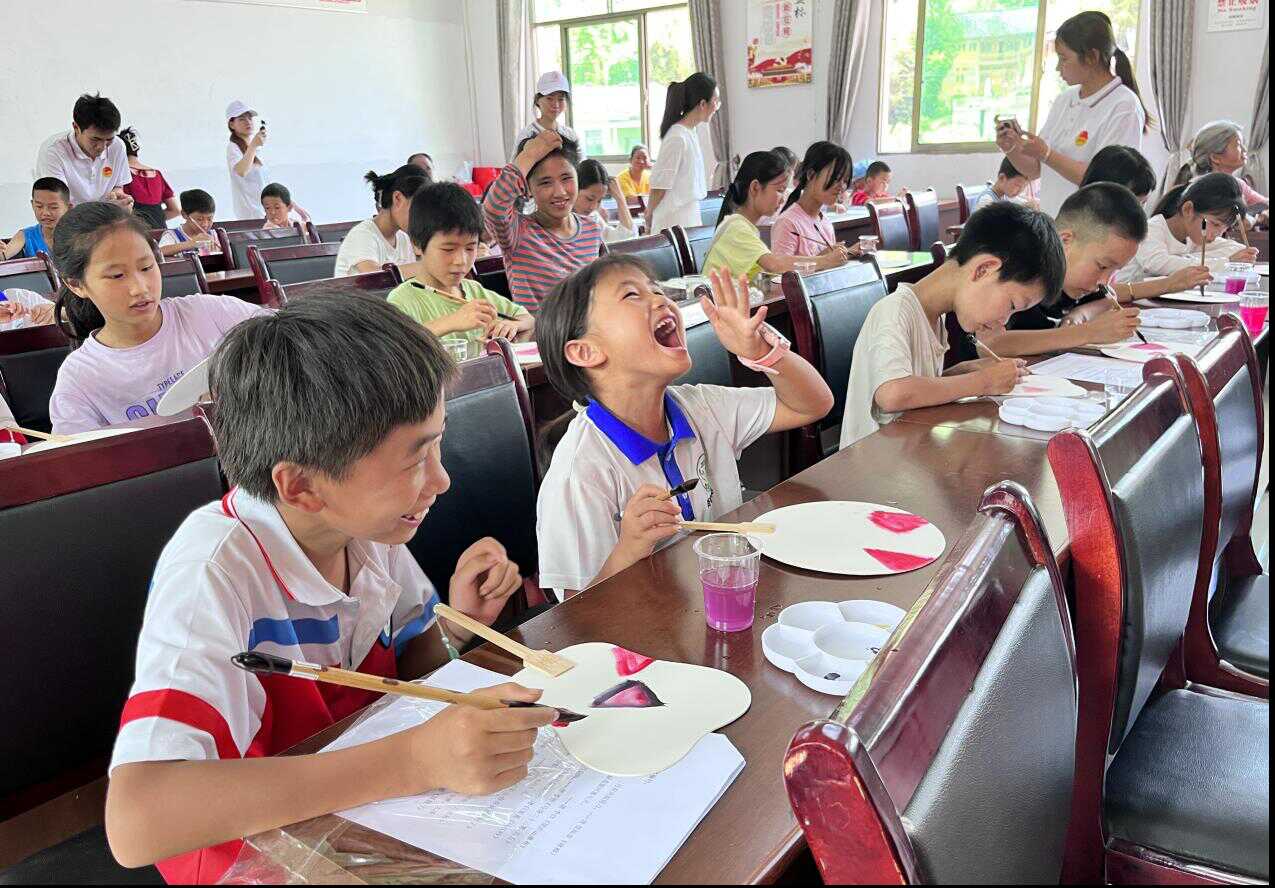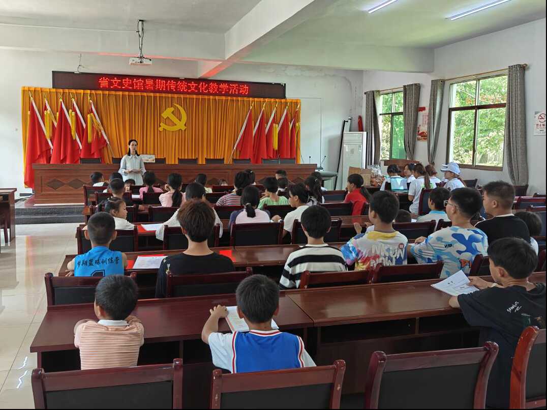 省文史馆派出的驻岭岗屯村第一书记付锦、驻河坝村工作队员胡海琴,结合自身的专业知识及特长,在岭岗屯村、河坝村“两委”的大力支持下,组织岭岗屯村、河坝村学生开展暑期中华优秀传统文化教学实践活动,为当地学生讲授“古典文学欣赏与写作”“书画艺术欣赏与扇面创作”等课程。